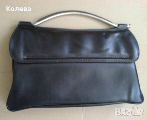 Дамска чанта от черна кожа, тип плик, но с дръжка, което я прави много удобна. Дръжката е метална. Съвсем малко използвана, запазена, вижда се на снимките. От времето на соца. Цена 10 лв.