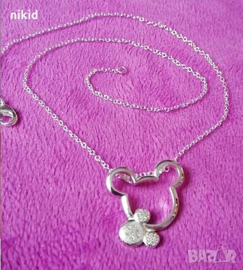 Колие гердан с висулка Мики Мини Маус сребрист печат 925 → Обява 24625253