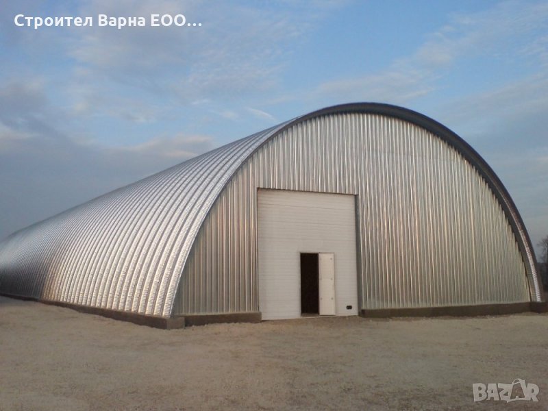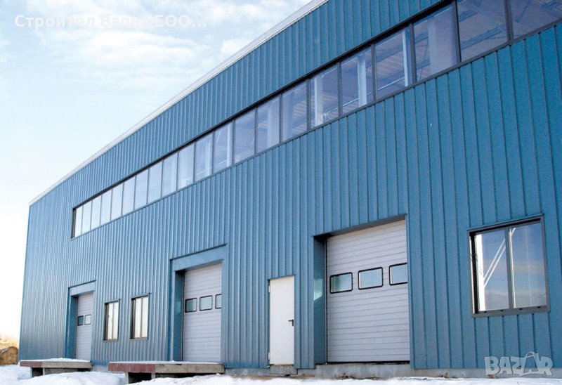 ---ПАКЕТ Цена за сграда с ТОПЛОИЗОЛАЦИЯ (стоманената конструкция е облечена с термопанели 4см) стандартно метално Хале, едно общо помещение, с пълно оборудване,прозорци,ВИК,ел.инсталация за 110 € кв.м. разгъната площ --Цената на конструкция по ваш размер и дизайн е по-скъпо с 10 € кв.м.
