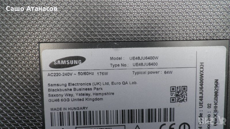 SAMSUNG UE48JU6400W със счупена матрица ,BN44-00807D ,BN41-02344D ,WCH730B ,CY-GJ048HGLVLH → Обява 24634664