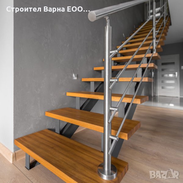 ---Цена за право метално стълбище с една централна носеща греда от Н-образен профил, с парапет за 115 € за всяко стъпало