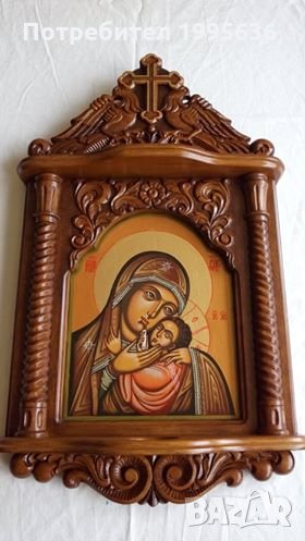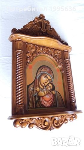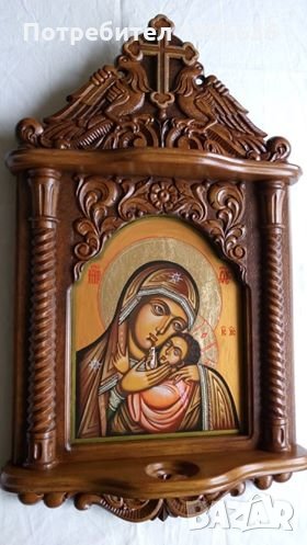 Дърворезба-домашен иконостас с иконопис "Богородица с младенеца" → Обява 24638810