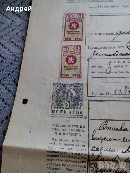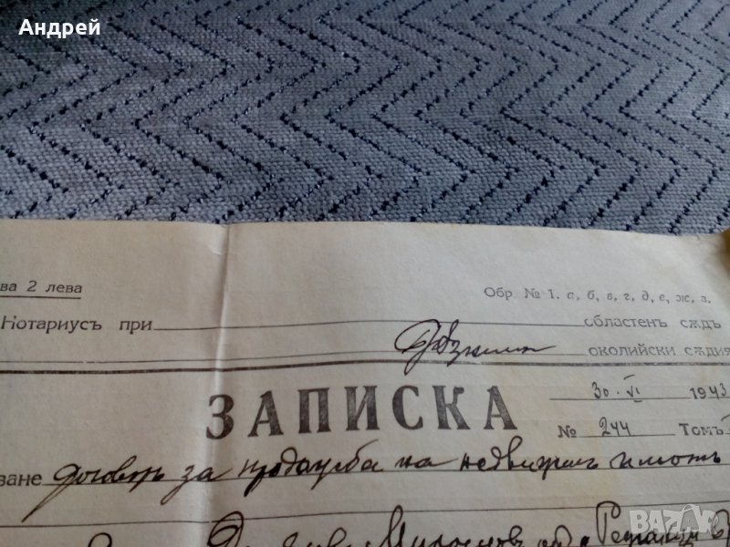 Стара записка за вписване на договор за покупко - продажба на имот 1942г.