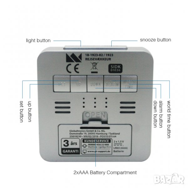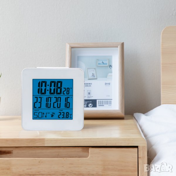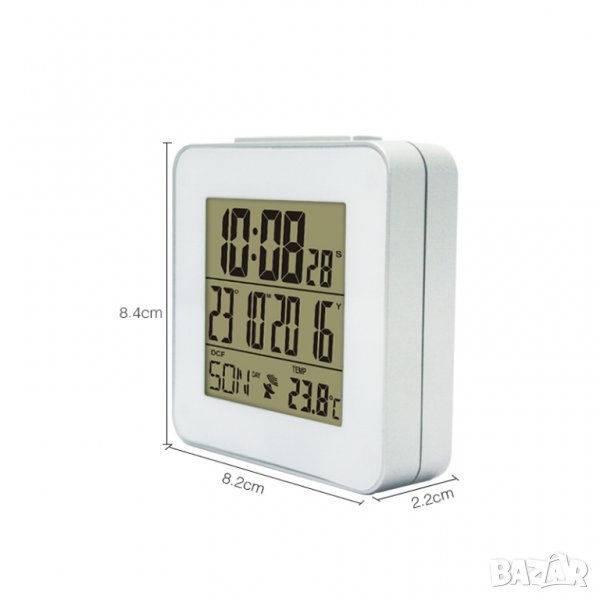 LCD часовник с аларма който показва и температурата в стаята. Подходящ както за дома така и са офиса. Със синя подсветка и възможност за дистанционно настройване на часа и датата чрез RCC вграден приемник (поддържащи стандарти WWVB, DCF, MSF, JJY)