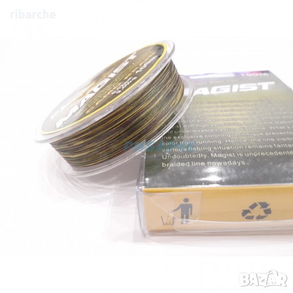 Качествено плетено камуфлажно влакно с гладка и мека повърхност ,щадяща водачите от триене ,за далечен кастинг ,отличаващо се с изключителна здравина на опън ,триене и възел.Отличен избор за спининг ,фидер,морски и други видове риболов.Предлага се на ролки от 100м