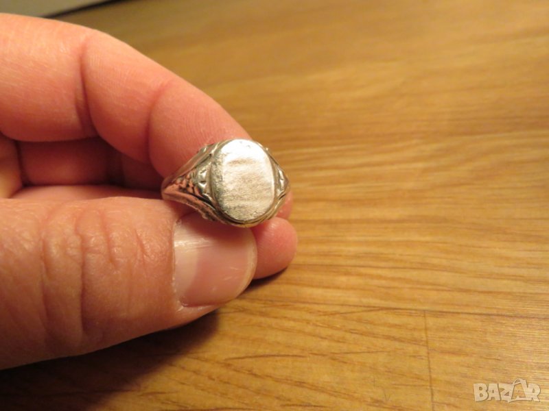 Стар мъжки сребърен пръстен с чиста плочка и красива ръчна изработка сребро