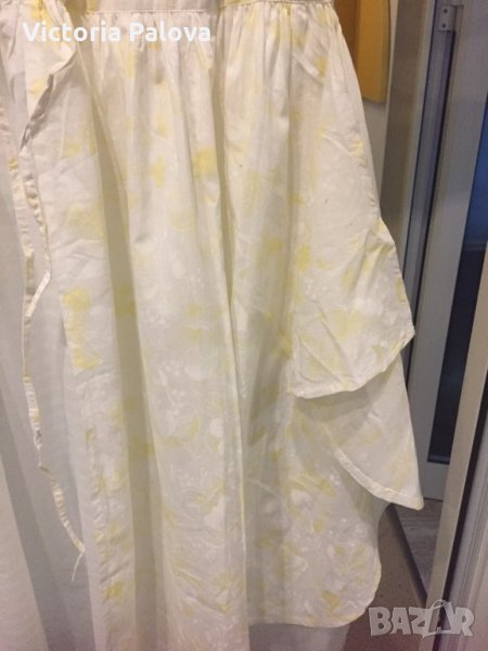 Романтична неординарна рокля с джобове и баска,която пада красиво на фалди.красива кройка,комбинирана от различни принтове материя,красив цвят,натурална дишаща материя.трудно е да се опише красотата на роклята,но в действителност е “ах!”.става за М и малък L.