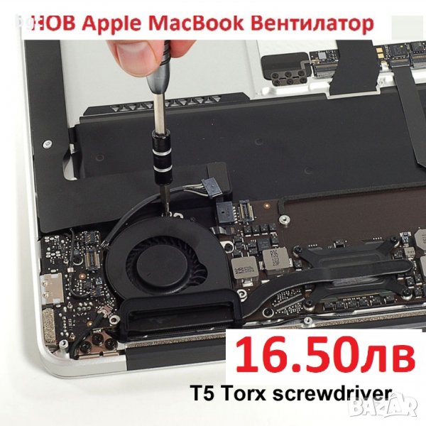 НОВ Вентилатор за APPLE MACBOOK AIR A1369 A1466 MC504 MC965 MD232 MC503 MD231 2011 2012 2013 и други. 922-9643, 923-0442, 923-00507 Printed Part #: KDB05105HC-HM05, MG50050V1-C02C-S9A MacBook Air 13" A1369 - MacBookAir3,2 Late 2010: MC503LL/A (1.86 GHz Core 2 Duo) - MacBookAir3,2 Late 2010: MC504LL/A (1.86 GHz Core 2 Duo) - MacBookAir3,2 Late 2010: MC905LL/A (2.13 GHz Core 2 Duo) - MacBookAir4,2 Mid 2011: MC965LL/A (1.7 GHz Core i5) - MacBookAir4,2 Mid 2011: MC966LL/A (1.7 GHz Core i5) - MacBookAir4,2 Mid 2011: MD226LL/A (1.8 GHz Core i7) MacBook Air 13" A1466 - MacBookAir5,2 Mid 2012: MD231LL/A (1.8 GHz Core i5) - MacBookAir5,2 Mid 2012: MD232LL/A (1.8 GHz Core i5) - MacBookAir5,2 Mid 2012: MD232LL/A (2.0 GHz Core i7) - MacBookAir6,2 Mid 2013: MD760LL/A (1.3 GHz Core i5) - MacBookAir6,2 Mid 2013: MD761LL/A (1.3 GHz Core i5) - MacBookAir6,2 Mid 2013: MD761LL/A (1.7 GHz Core i7) - MacBookAir6,2 Early 2014: MD760LL/B (1.4 GHz Core i5) - MacBookAir6,2 Early 2014: MD761LL/B (1.4 GHz Core i5) - MacBookAir6,2 Early 2014: MD761LL/B (1.7 GHz Core i7) - MacBookAir7,2 Early 2015: MJVE2LL/A (1.6 GHz Core i5 or 2.2 GHz Core i7) - MacBookAir7,2 Early 2015: MJVG2LL/A (1.6 GHz Core i5 or 2.2 GHz Core i7) Identifying Numbers: - Apple Part #: 922-9643, 923-0442 - Printed Part #: KDB05105HC-HM05, MG50050V1-C02C-S9A