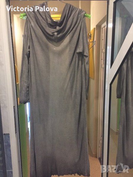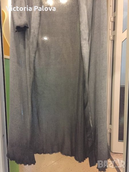 Нежен цвят капучино,едва забележимо омбре,тънка материя(100%памук),ефектна и красива дреха,която служи за красота и многопластовост на look-а. Рамо - 58см, ГО - 64см, дължина - 124см. Пасва на всички размери.