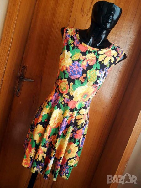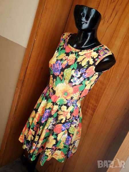 Флорална къса разкроена рокля с гол гръб С/М → Обява 24705556