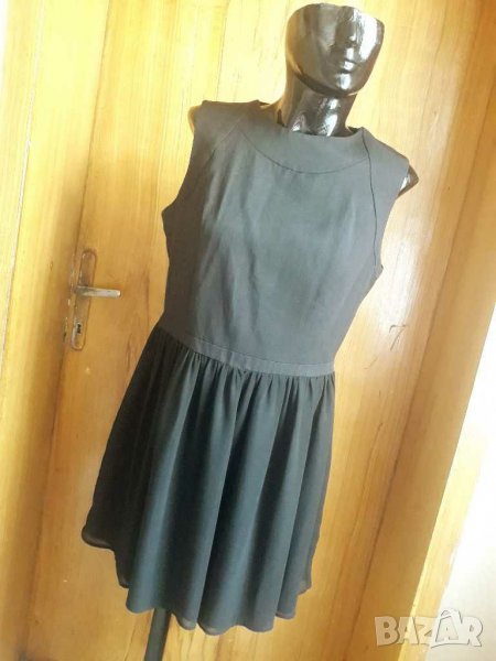 Черна къса разкроена рокля с долна част шифон Л → Обява 24706096