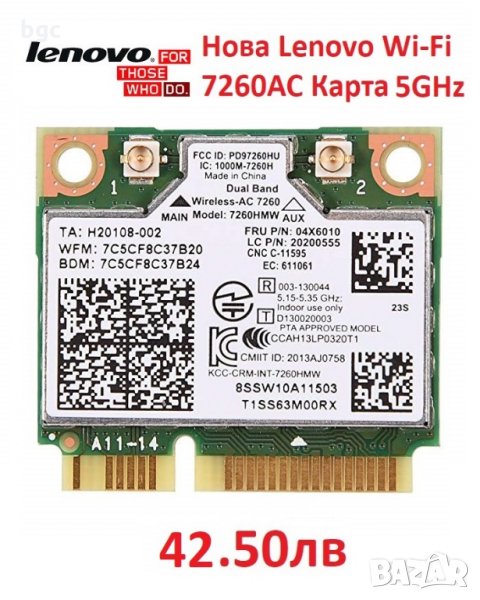 Тип: Оригинална intel 7260 AC карта подходяща САМО за LENOVO Лаптопи
