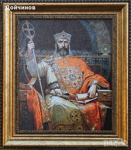"Цар Симеон на трон" е една от най - представителните картини, показваща величието на българската държава през вековете. Тя е чудесен подарък за всякакъв повод и може да украси както семейното жилище, така и държавни учреждения, офиси, хотели и др., с което да покажем нашата българска национална идентичност.