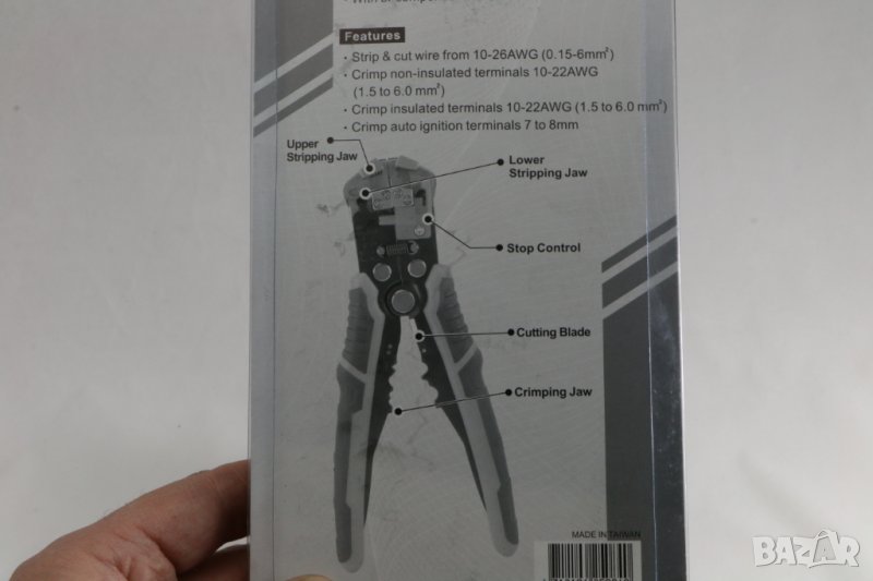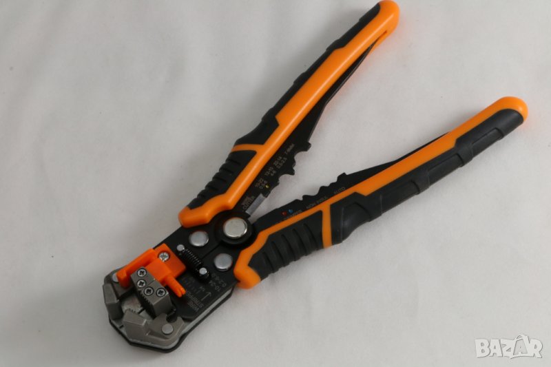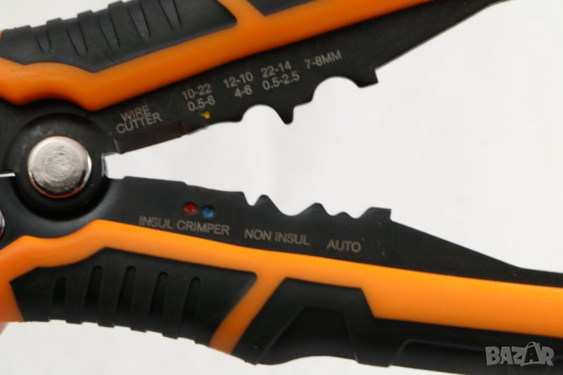 клещи 200 мм за сваляне на изолация 0,2 -6 кв.мм и кримпване, Германия. Регулират се според сечението на кабела. Тегло 360 гр. Удобна двукомпонентна ръкохватка. Фина настройка за 30 AWG, 0,05 мм. Изработени са от стомана с висока издръжливост. Накрайник за кримпване за изолирани и неизолирани клеми от 0.5–6.0 mm. Уплътнител за кабел за запалване 7–8 mm.