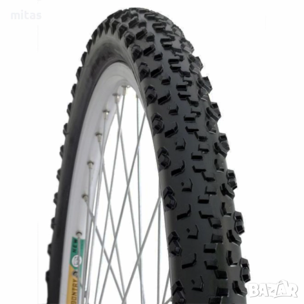 - Протектор: Агресивен планински дизайн с широки междинни канали