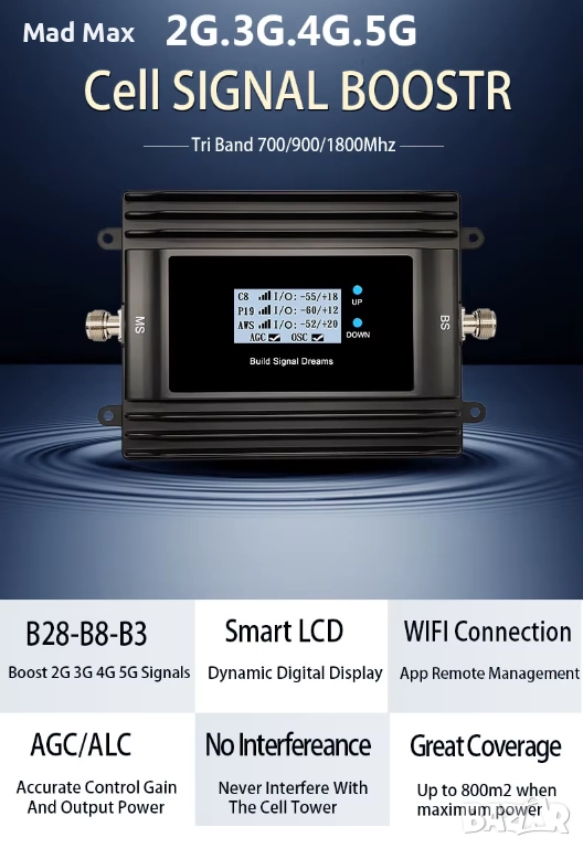 EGSM 3G/4G/5G LTE 700/800~900~1800 Booster Repeater Профи Усилвател GSM Сигнал B20/B28~B8~B3