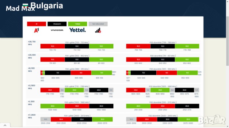 От края на 2023 г. в България се ползват два нови банда (Band 28 / 700 MHz) и (Band 20 / 800 MHz)