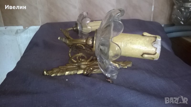 два барокови аплика за стена.позлатен бронзов корпус с размери 19см/36см/13см.забележкана стъклената част-посочена е.внос от франция.
