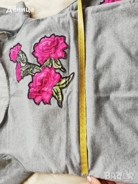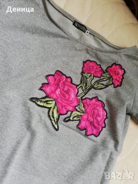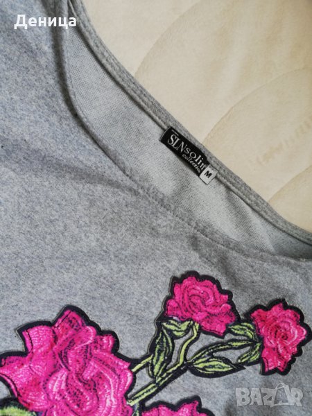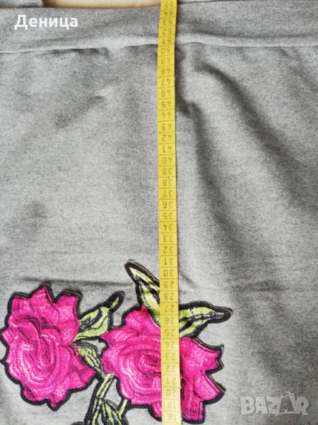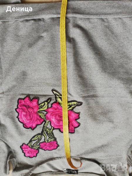 Екипът е от две части. . М размер. Не се разтяга. Интересен дизайн. Блуза-дължина от рамо до долу 56 см, 45-46см ширина под мишници, панталон дължина 82 см, 44см (с разпънат ластик) 37см (в нормално състояние) талия едностранно премерено, ханш 50 см едностранно.