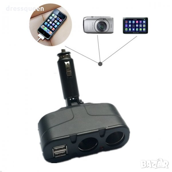 033 Двоен сплитер за запалка с 2 броя USB → Обява 24746295