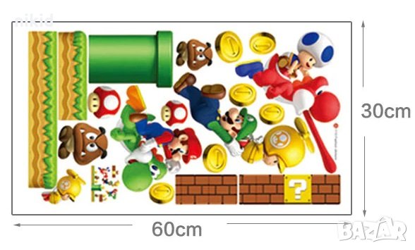 Супер Марио Super Mario и Луиджи самозалепващ стикер лепенка за стена, снимка 1 - Други - 24753199 Супер Марио Super Mario и Луиджи самозалепващ стикер лепенка за стена, снимка 2 - Други - 24753199 1/2