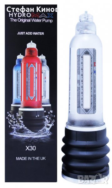Хидропомпа уголемяване Bathmate Hydromax / Хидромакс Bathmate X30 е един от най-продаваните уреди за уголемяване в света. Помпата използва вода, а не налягането на въздуха, за да максимизира потенциално засмукване. При редовно използване, за 60 дни можете да увеличите размера на