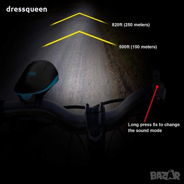 2141 Мощен LED T6 фар със електронен звънез за велосипед → Обява 24774600