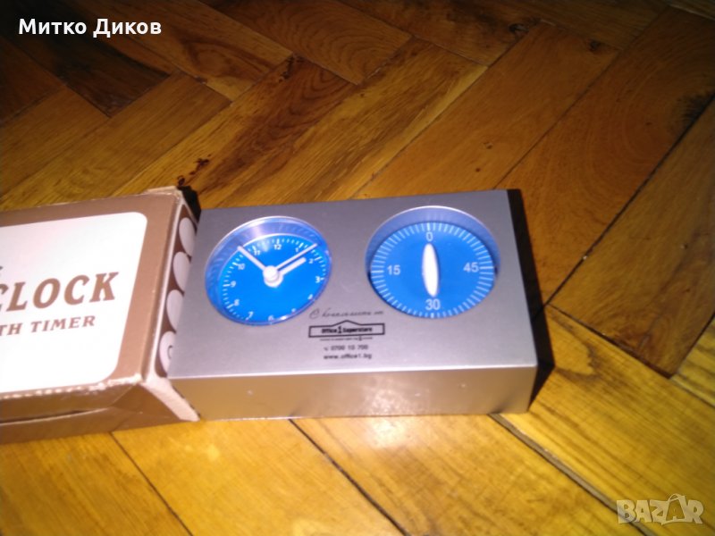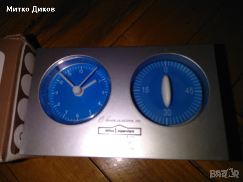 Часовникът е с таймер отделно до 45минути-работи перфектно с една малка батерия-много удобен за мене -откакто си купих един такъв за мене няма пожари в къщи-отивам на компа и забравям че топля ядене или кафе и айде дявол на магаре както се казва-това Ви спасява -навивате надясно стрелката на таймера на 15минути докато се прави кафето и звъни-изпращам по еконт с отстъпка