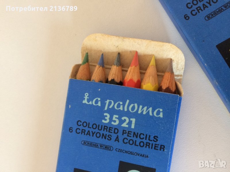 Моливи La Paloma 3521 Bohemia Works Czechoslovakia Кутиите (9/4.5/08 см )съдържат по 6 бр цветни моливи Нови неупотребявани! Цена за кутия 3 лв