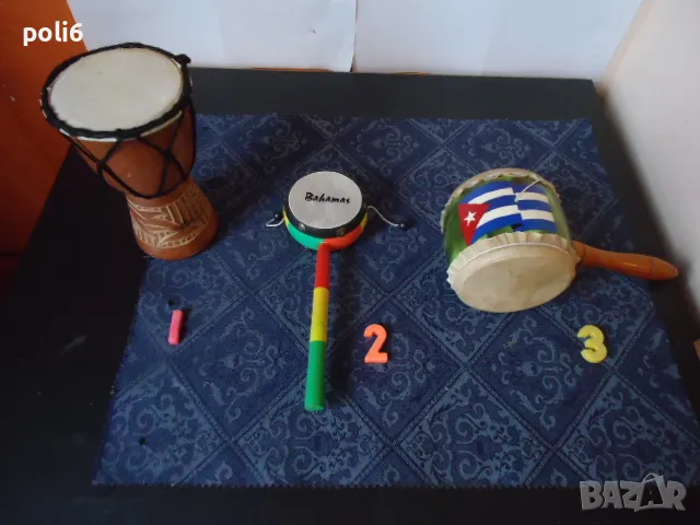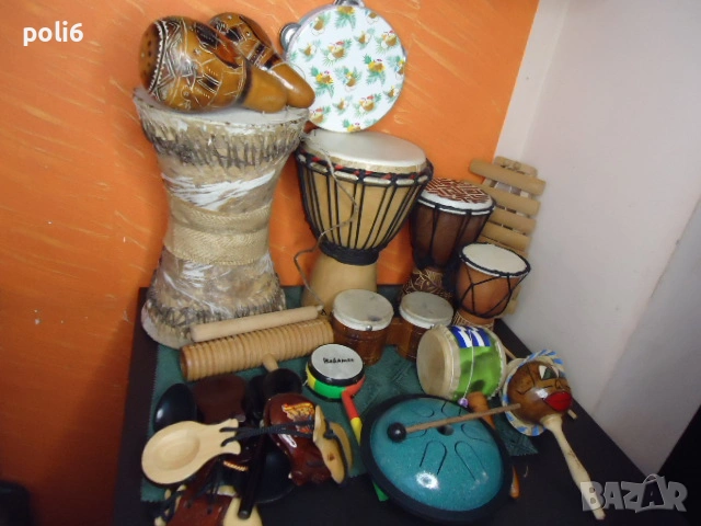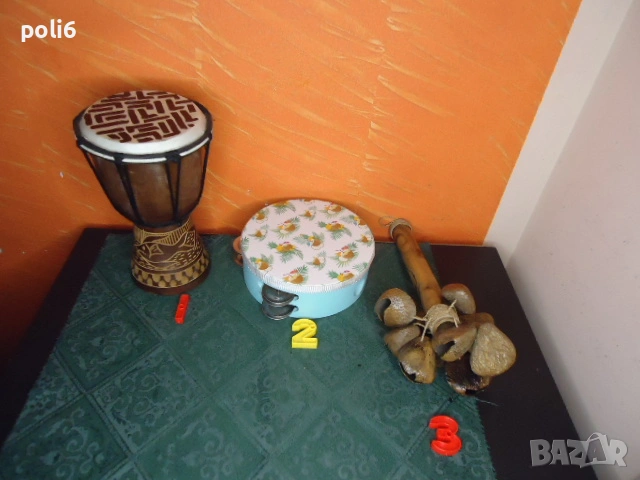 тарамбука, маракас , кастанети, там-там барабанче с топче,барабан-език ,ксилофон,гуиро