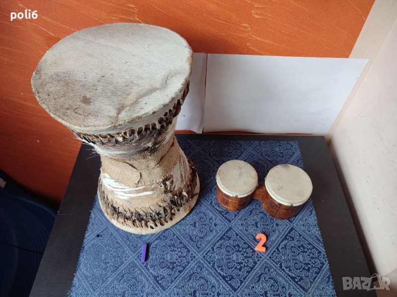 Африканска изцяло кожена двойна тарамбука - ширина 30см, диаметър 19см цена 30€, двойна малка тарамбука направена на принципа на бъчвата, цена 6€