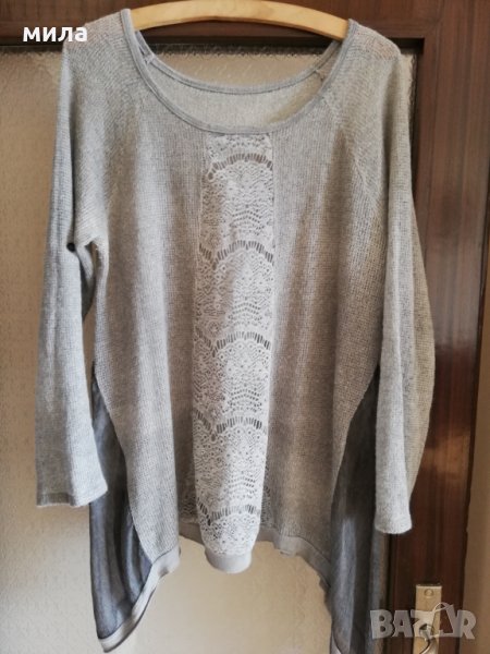 Светло сива туника, дължината в най дългата част е 88см., в късата част е 65 см. Ширина 110 см. Стои много ефектно.