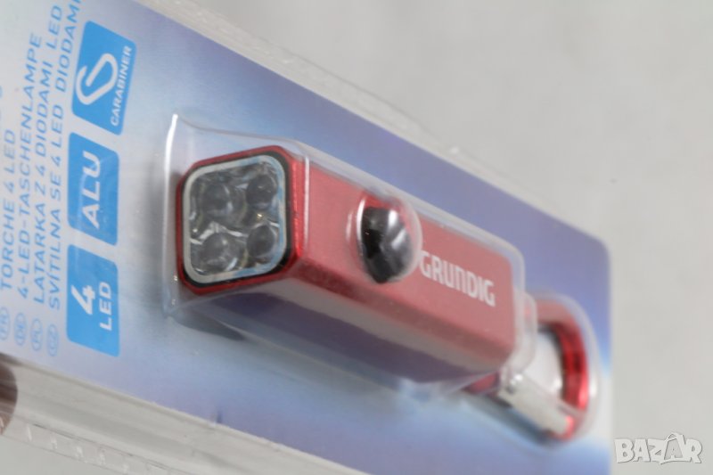 Led фенерче ключодържател Grundig,ново, немско,внос от Белгия. Работят с батерии 4хLR44 (не са вкл.). Алуминиев корпус, 4 Led светодиода. Налични в червено, сребристо, черно и синьо. Цената е за 1 бр.