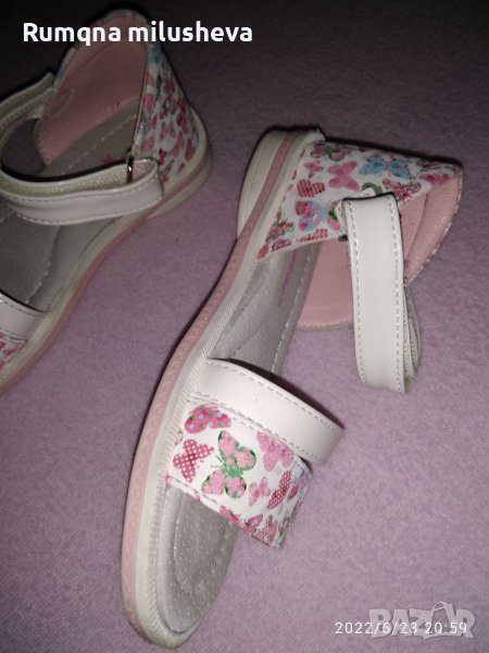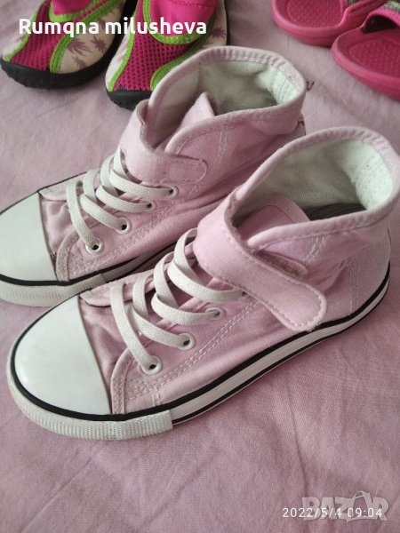 Пантофки номер 30ти 10лв.Сандали размер 28 естествена кожа с пеперудки 20 лв. обувани 2/3пъти много запазени . Пантофи 31номер 12лв Розови кецове 29номер 10лв. Обувки за плаж 29/29 номер 10лв розови маратонки чорап 29номер Сребърни кецове 27номер летни.