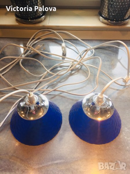 Лампи за таван,които се закачат за куки(на шнура има специални механизми),без монтаж,включват се в контакт.купени в Германия,не са китайски,много добре украсяват интериора,особено ако се регулират да висят на различна височина.14см е диаметър,10-11см са високи.дължината на кабела е 3,5 метра.