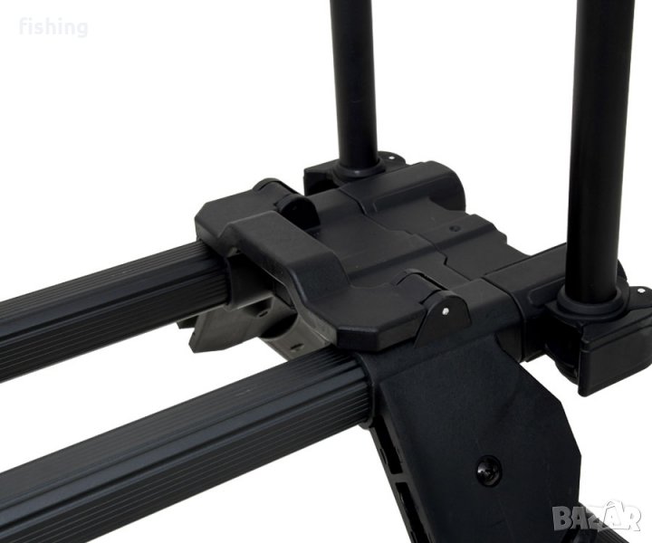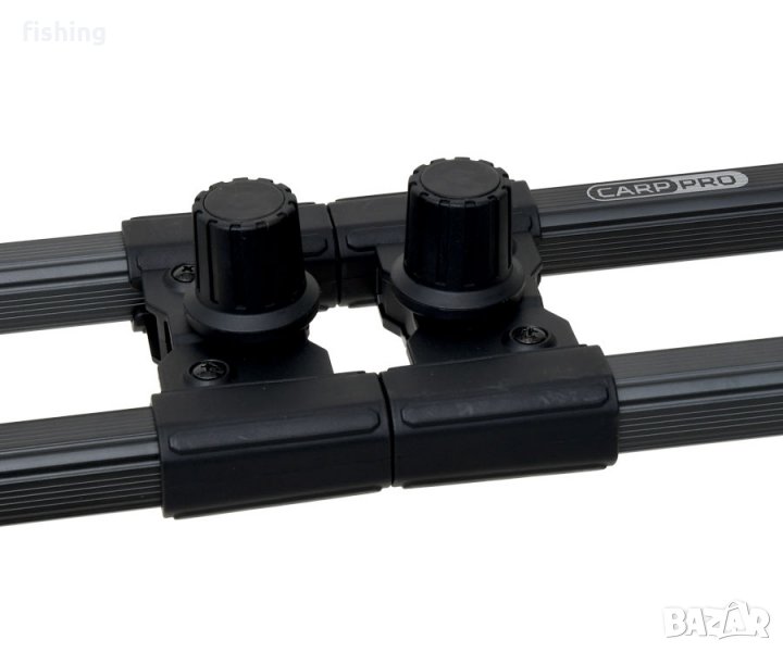 Carp Pro Rod-POD за 3-4 пръчки CP6155 е перфектна комбинация от функционалност и модерен дизайн. Всички части, които са изработени от алуминий, имат матово черно покритие, което елиминира отблясъците. Лекият, сложен дизайн е компактен в транспортната позиция и може да бъде приведен в работно състояние много бързо. CARP PRO CP6155 ROD-POD е много стабилен, всички крака имат телескопичен дизайн, което дава възможност да се регулира наклона в широки граници и да го инсталира на неравномерен терен. Определените съвети допринасят за надеждното фиксиране на краката върху различни повърхности. Дължината на леглото на пръчката също е регулируема - бързо и удобно. Дизайнът позволява използването на всякакви аларми за ухапване и държачи за комел със стандартна нишка. Предлага се в удобен капак, изработен от трайна материя.
