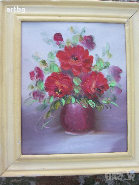 Автентична картина "Цветя, ваза" → Обява 24805785