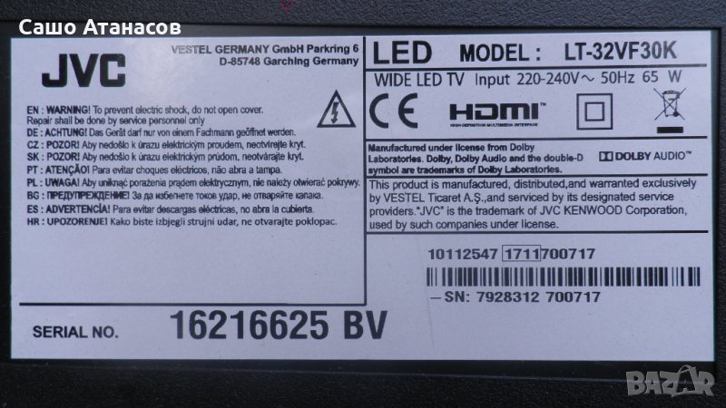 JVC LT-32VF30K със счупена матрица ,17IPS62 ,17MB140 ,32T42-C0K CTRL BD ,VES315UNDA-2D-N11 ,17LD166