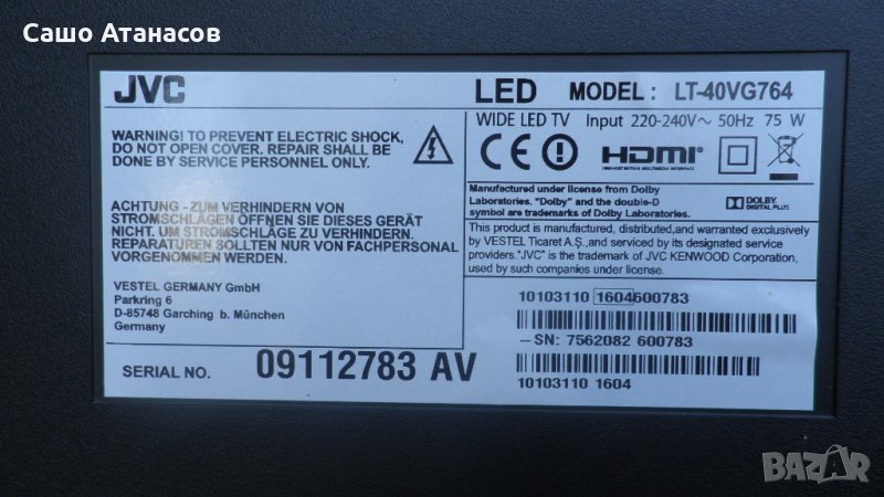 JVC LT-40VG764 със счупена матрица ,17MB97 ,17IPS12 ,17WFM03 ,VES400UNDS-2D-N11 ,17LD160, снимка 1 - Части и Платки - 24806834 JVC LT-40VG764 със счупена матрица ,17MB97 ,17IPS12 ,17WFM03 ,VES400UNDS-2D-N11 ,17LD160, снимка 2 - Части и Платки - 24806834 JVC LT-40VG764 със счупена матрица ,17MB97 ,17IPS12 ,17WFM03 ,VES400UNDS-2D-N11 ,17LD160, снимка 3 - Части и Платки - 24806834 JVC LT-40VG764 със счупена матрица ,17MB97 ,17IPS12 ,17WFM03 ,VES400UNDS-2D-N11 ,17LD160, снимка 4 - Части и Платки - 24806834 JVC LT-40VG764 със счупена матрица ,17MB97 ,17IPS12 ,17WFM03 ,VES400UNDS-2D-N11 ,17LD160, снимка 5 - Части и Платки - 24806834 JVC LT-40VG764 със счупена матрица ,17MB97 ,17IPS12 ,17WFM03 ,VES400UNDS-2D-N11 ,17LD160, снимка 6 - Части и Платки - 24806834 JVC LT-40VG764 със счупена матрица ,17MB97 ,17IPS12 ,17WFM03 ,VES400UNDS-2D-N11 ,17LD160, снимка 7 - Части и Платки - 24806834 JVC LT-40VG764 със счупена матрица ,17MB97 ,17IPS12 ,17WFM03 ,VES400UNDS-2D-N11 ,17LD160, снимка 8 - Части и Платки - 24806834 JVC LT-40VG764 със счупена матрица ,17MB97 ,17IPS12 ,17WFM03 ,VES400UNDS-2D-N11 ,17LD160, снимка 9 - Части и Платки - 24806834 JVC LT-40VG764 със счупена матрица ,17MB97 ,17IPS12 ,17WFM03 ,VES400UNDS-2D-N11 ,17LD160, снимка 10 - Части и Платки - 24806834 JVC LT-40VG764 със счупена матрица ,17MB97 ,17IPS12 ,17WFM03 ,VES400UNDS-2D-N11 ,17LD160, снимка 11 - Части и Платки - 24806834 JVC LT-40VG764 със счупена матрица ,17MB97 ,17IPS12 ,17WFM03 ,VES400UNDS-2D-N11 ,17LD160, снимка 12 - Части и Платки - 24806834 JVC LT-40VG764 със счупена матрица ,17MB97 ,17IPS12 ,17WFM03 ,VES400UNDS-2D-N11 ,17LD160, снимка 13 - Части и Платки - 24806834 JVC LT-40VG764 със счупена матрица ,17MB97 ,17IPS12 ,17WFM03 ,VES400UNDS-2D-N11 ,17LD160, снимка 14 - Части и Платки - 24806834 JVC LT-40VG764 със счупена матрица ,17MB97 ,17IPS12 ,17WFM03 ,VES400UNDS-2D-N11 ,17LD160, снимка 15 - Части и Платки - 24806834 1/15