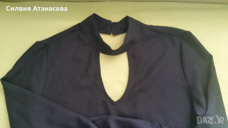 Риза черна официална, 100% полиестер, нова, без забележки. Дължина от раменете 55см от мишниците 31см ширина при раменете 36см обща ширина 40см дължина на ръкава от раменете 60см от свивката 44 см ширина на ръкава 16см.и измерени едностранно.