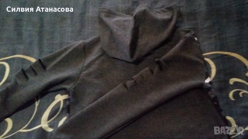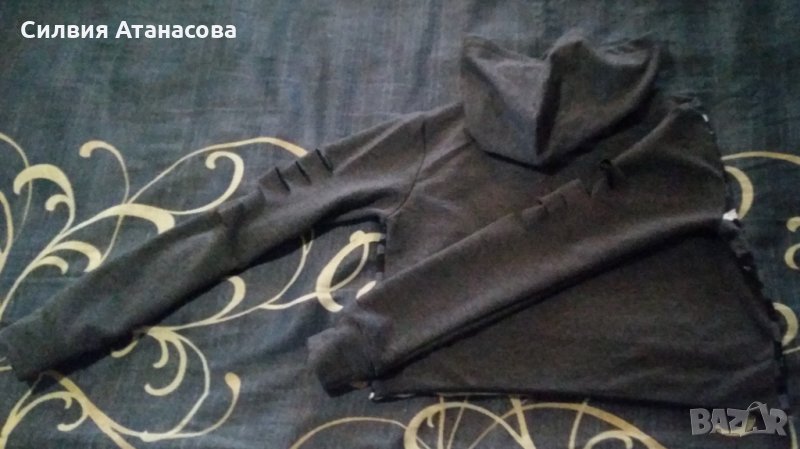 Блуза с качулка, късичка до кръстчето, интересен модел, качествен материал, бълг. производство, за момиче 13-15години, размер S, нова, без забележки.