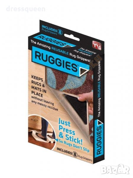Ruggies са малки силиконови триъгълници изработени , така че да придържат вашите килими и пътеки към плъзгащите ви подови настилки, без да оставят каквито и да било остатъци по настилката.