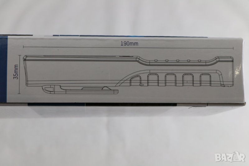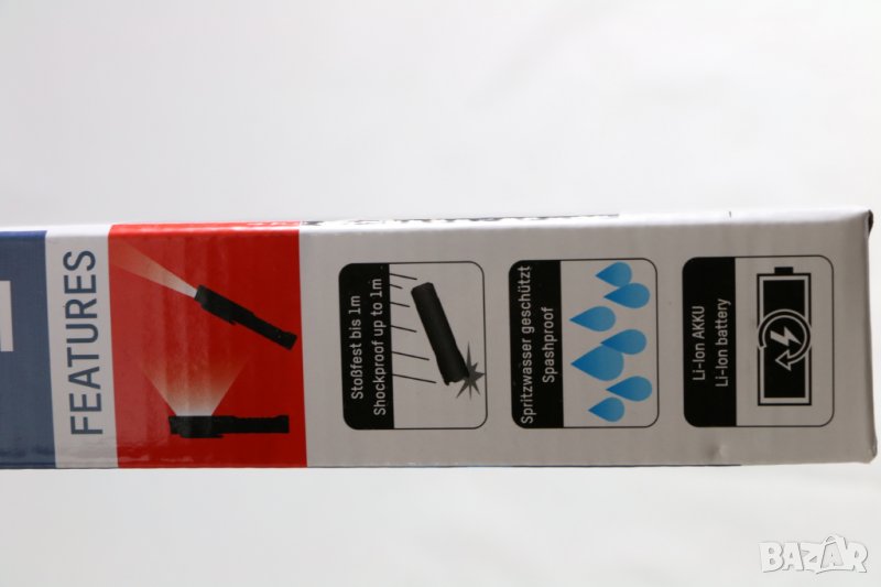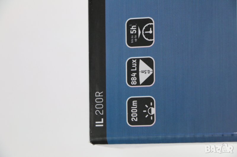 работна лампа, фенер, 200lm, 1100 mAh, Германия. Работна температура 6000 К, гумирана повърхност. Лампата има силна светлина, благодарение на SMD LED технология и лупа за допълнително увеличаване. Има вградена литиево-йонна батерия 3.7V 1100mAh (4,07Wh). Зарежда се с USB с адаптор 100-240V AC / 50-60Hz. Ток на заряд: 5V / 500mA. Има здрава фиксираща скоба в задната част на осветителното тяло с вграден магнит за закрепване към метални предмети. Основен осветител е 5 светодиода x 0.65W SMD LED с време на светене 3,5h. Допълнителната светлина (прожектор) - 3W LED е с оптична оптика 100 Lm / 3300 Lux и време на светене 5h. Тегло 98g. Размери 191x25.2x34.4mm. Време за зареждане 3h. Клас на защита на лампата IP 20. Устойчивост на удар (EN62262) IK07.