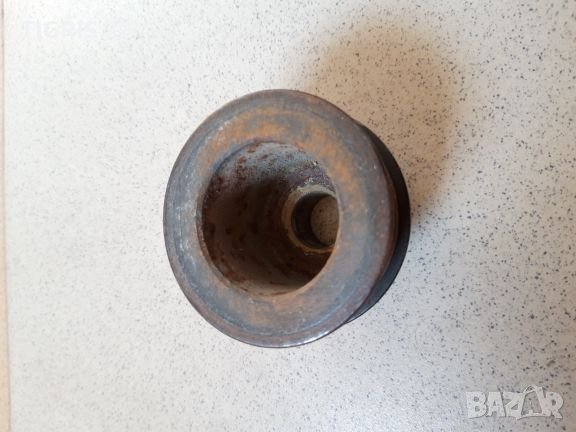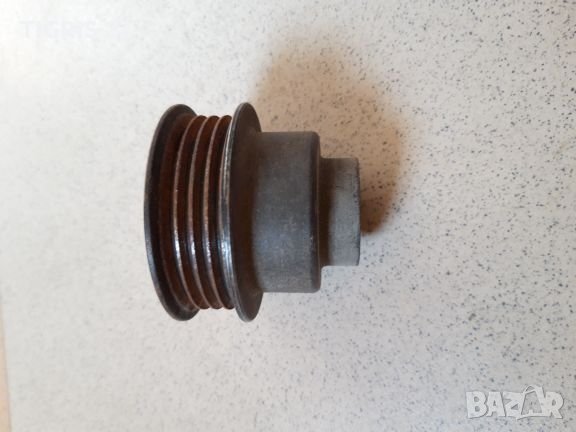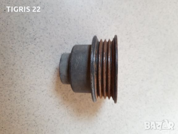 Шайба за генератор Bosch / Бош. За пистов ремък. Напълно здрава и читава , без подбито , криво и следи от чукане или напъване. Вътрешният отвор е 17 мм , на зъбите на ремъка - 54.3 мм и във най-широката част след зъбите е 61 мм. Цялата е дълга 49 мм , и дълбочината от където се завива гайката е 33.5 мм. Премахната е поради монтирана на друга за ремък който е на конус - трапецовиден. Доставката е за сметка на купувача и е със 10% отстъпка на Еконт.