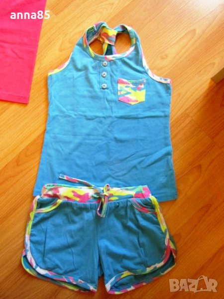 Бялата тениска е Окей, а на синия комплект съм отрязала етикета.