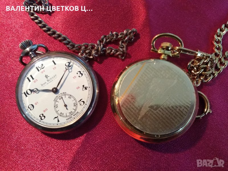 Джобни часовници Жан Руле нови. Кутиите са от масивно сребро, механични швеѝцарски механизми собственно производсво. С отваряеми капаци и верижки по желание. Цената на верижката е 28лв допълнително.