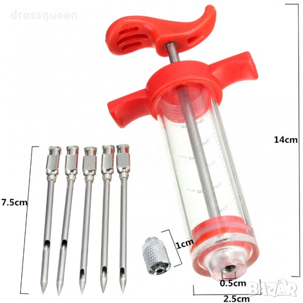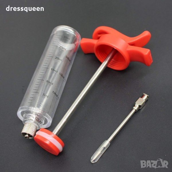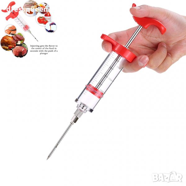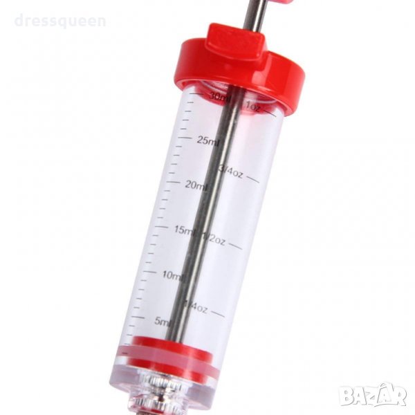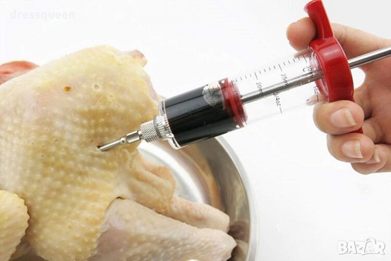 Спринцовка, с която се инжектира сос в печеното месо