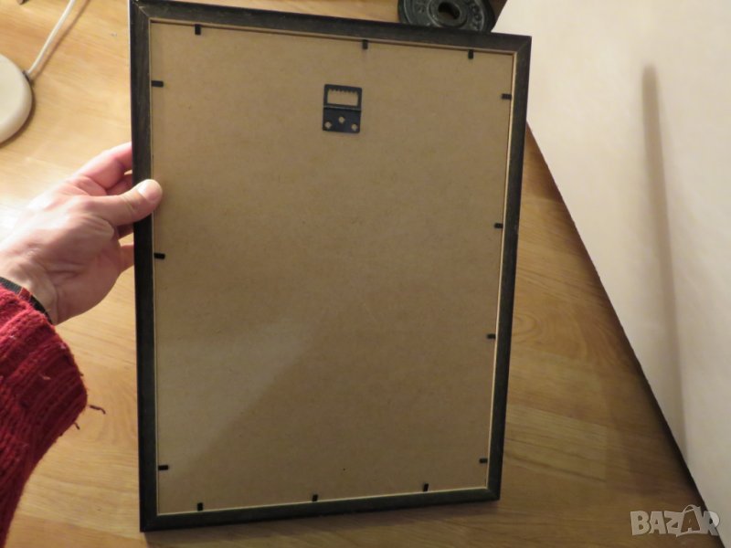 Картината е с дървена рамка, покрита със стъкло и кукичка за закачане на гърба