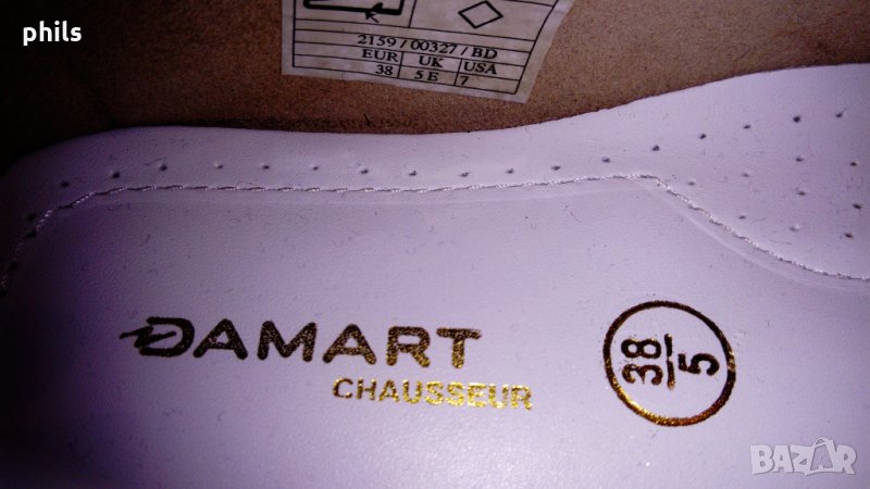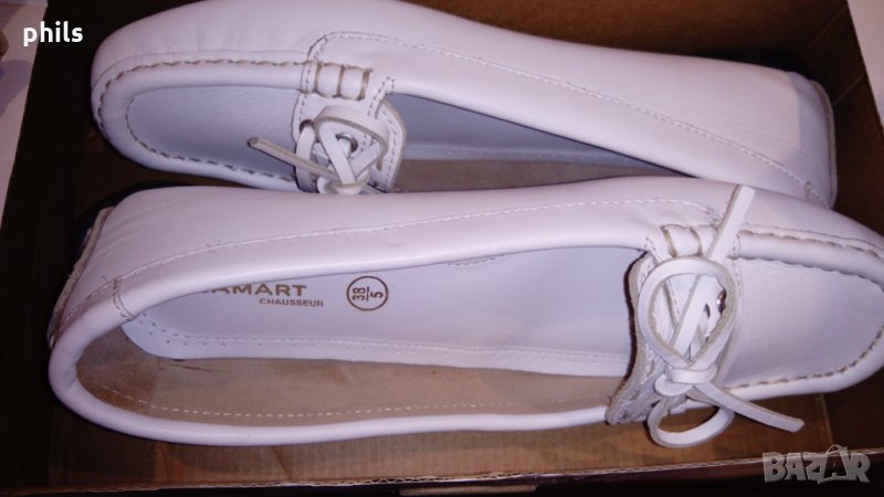 Нови,бели мокасини, естествена кожа, марка Дамарт. 38 номер подходящи за тесен крак. Стелка 24,2см..