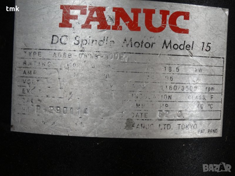 Фирма "Техно Маш Комплект" ЕООД предлага нов, японски правотоков четков двигател производство на FANUC. Електромоторът е демонтиран от ново съоръжение, което никога не е било въвеждано в експлоатация. Двигателят е със следните параметри: